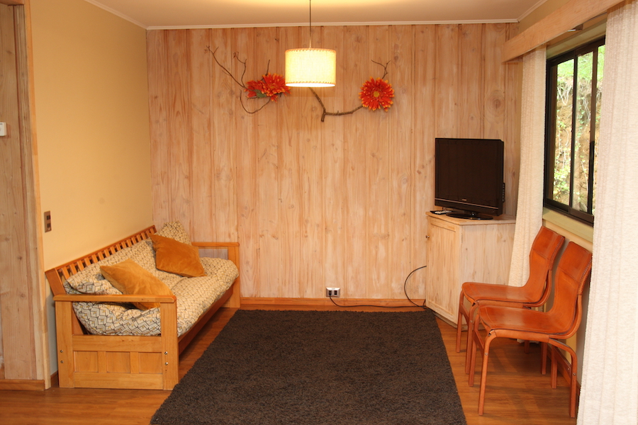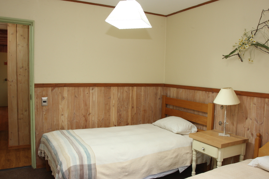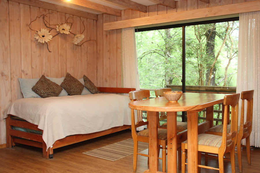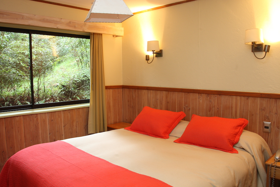 Posee 1 habitación con cama súper King, Tv cable y baño en suite con ducha de agua termal, 1 habitación con dos camas de una plaza, dos baños, uno con bañera de agua termal y el segundo con ducha de agua termal, living con cama Nido (para 2 personas), futón para una persona, mesa de desayuno, TV cable, caja de seguridad, minibar, jardín privado, batas, desayuno buffet y vistas al bosque.